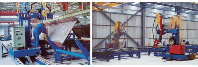LHC column-beam type welding machine can be arranged in symmetry, for 45° submerged arc welding of two seams on H-beam. Work-piece racks should be fixed on the ground among the 2 sets of LHC. The machine is equipped with seam tracker, automatic flux feeding and recovery device. Welding speed is controlled with inverter and displayed in digital. It is small in area and low in investment.